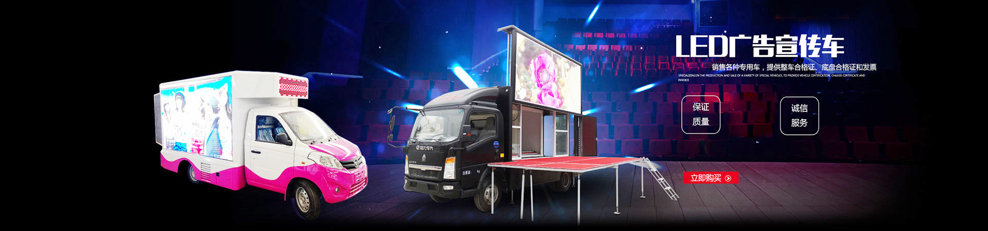 • 隨州**汽車貿易有限公司主要產品包括灑水車、加油車、冷藏車、油罐 車、垃圾車、吸糞車、吸污車、道路清掃車、高壓清洗車、高空作業車、自卸車、半掛車、清障車、隨車吊、教練車、散裝水泥車、化工車、流動舞臺車、 廣告宣傳車、爆破器材運輸車、混凝土攪拌運輸車、平板運輸車等八大系列100多個品種車型及其相關專用汽車配件。